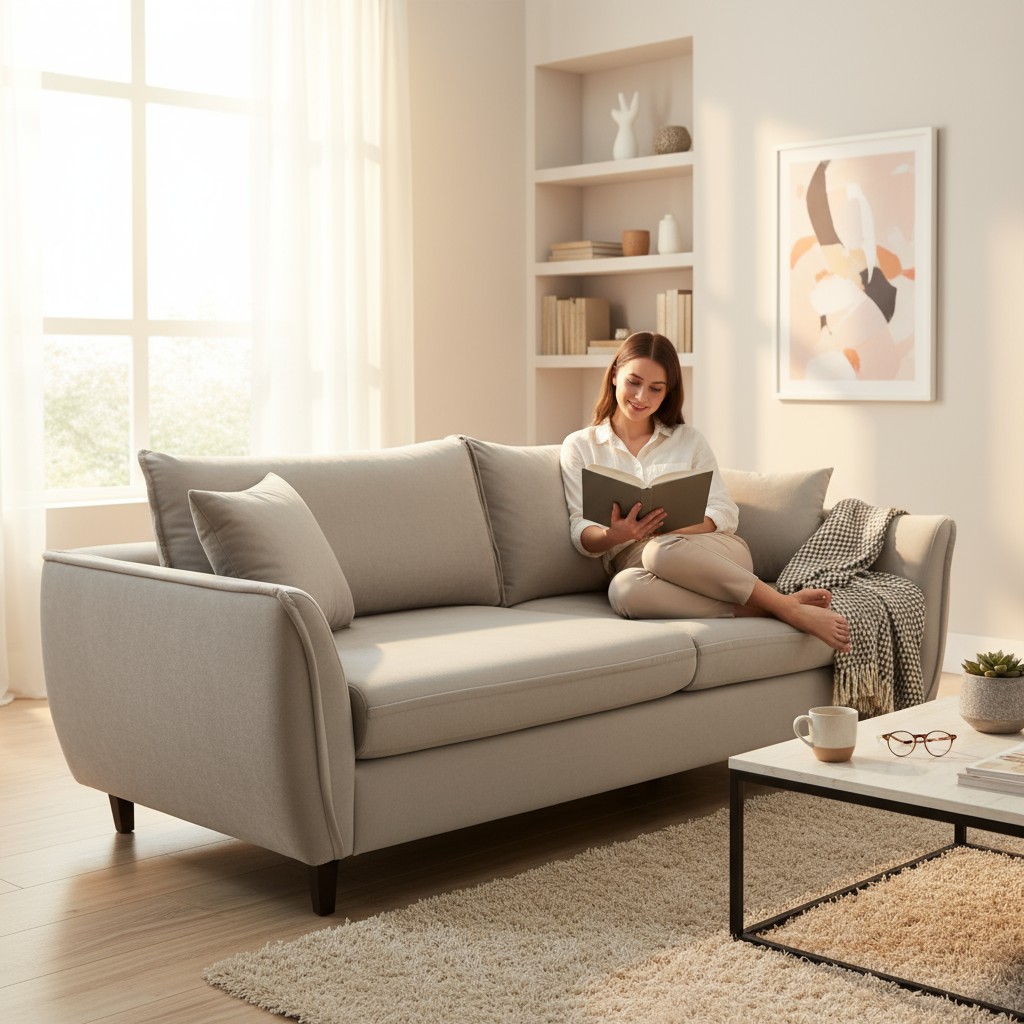 Canapeaua are arcuri independente și este umplută cu spumă HR (Rezistență ridicată) de înaltă calitate, care oferă confort în timpul odihnei și relaxării.